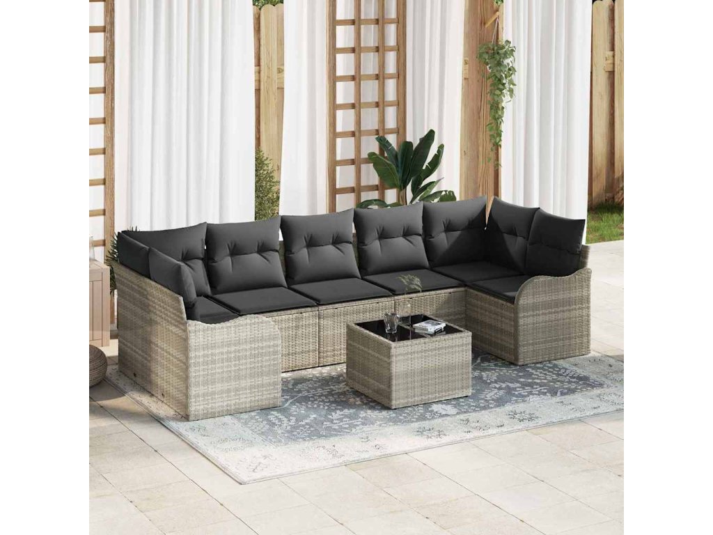 Tato moderní zahradní sedací souprava je skvělým doplňkem pro jakýkoliv venkovní prostor a nabízí pohodlí i moderní vzhled. Navržená tak, aby proměnila vaši zahradu nebo terasu v klidnou oázu, souprava kombinuje jednoduchost a funkčnost s čistými liniemi a otevřeným rámem. Skvělá kombinace poly ratanu a oceli dodává decentní eleganci, ideální pro setkávání, odpočinek nebo jen lenošení na sluníčku. Díky modulární konstrukci se souprava přizpůsobí různým potřebám a preferencím a nabízí pohodlí a flexibilitu pro každou situaci.