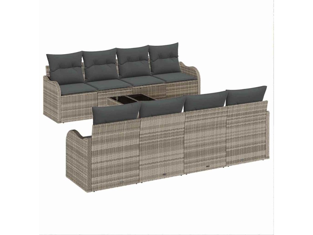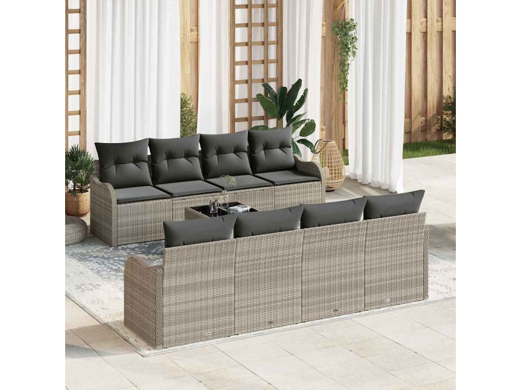 Tato současná zahradní sedací souprava je stylová a pohodlná pro venkovní prostory. Kombinuje moderní design s praktičností, což ji dělá ideální pro zahrady nebo terasy. Obdélníkový tvar je univerzální, snadno se přizpůsobí jak intimním šichtám, tak větším akcím.