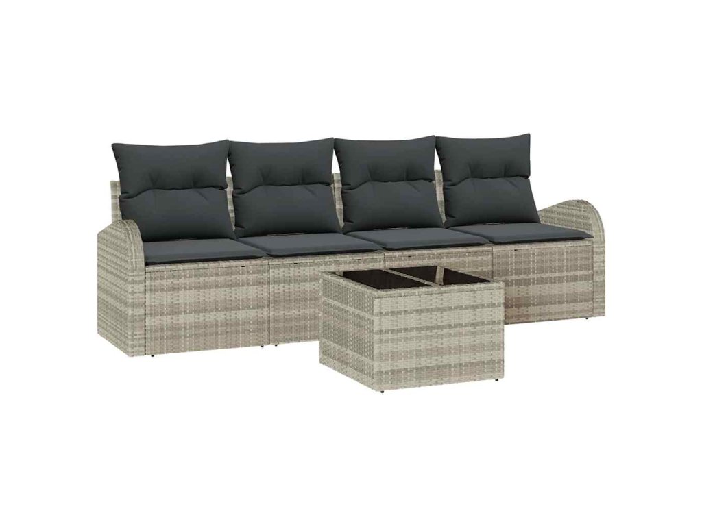 - Odolné materiály Tento pohovkový set je vyrobený z kvalitního poly ratanu, který je odolný vůči povětrnostním vlivům, takže zůstane v pohodě za různých podmínek – ideální pro celoroční užití na terase nebo zahradě.
