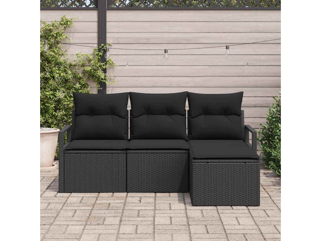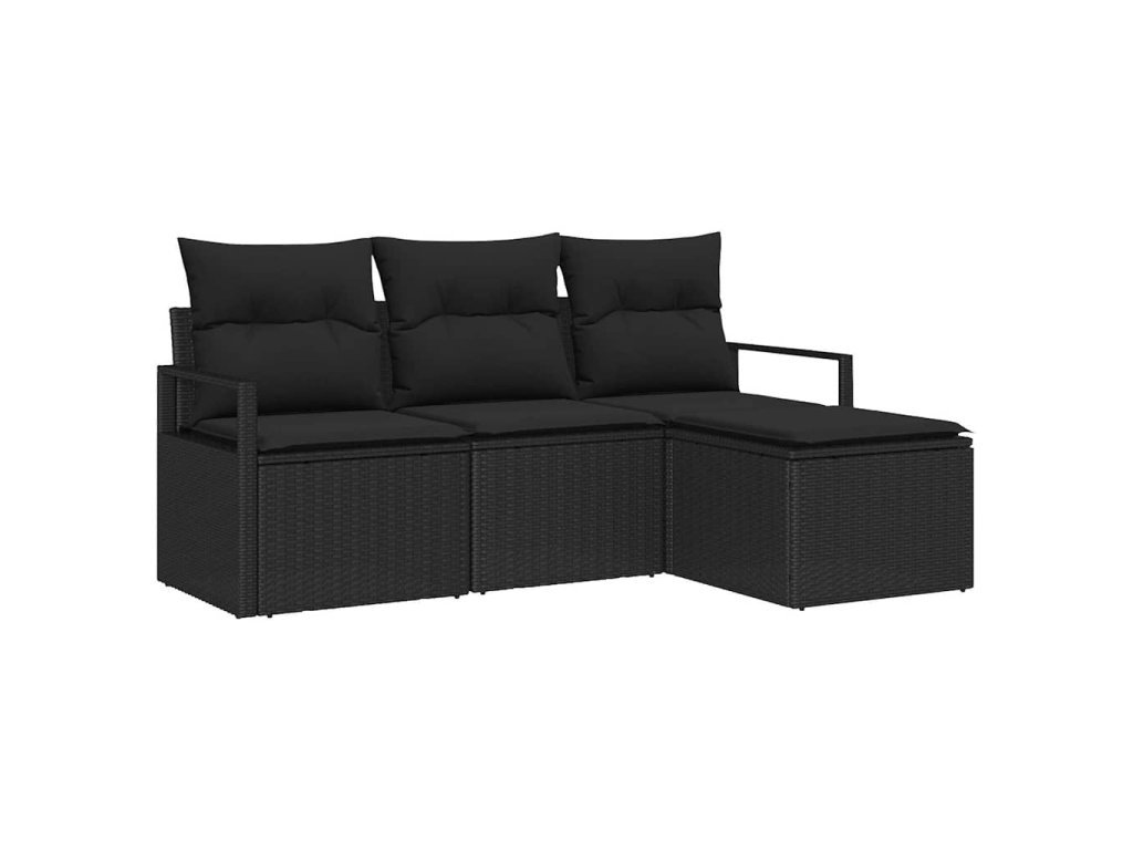 - Součásti: Zahradní pohovka se skládá ze středního sedáku, dvou bočních pohovek a podnožky. Polštáře plněné pěnou zajišťují pohodlí, oporu má na robustním rámu z práškově lakované oceli. Zipy umožňují snadné sejmutí a údržbu polštářů. Dokončená zadní část a ploché opěrky rukou zajišťují dokonalý vzhled ze všech stran.