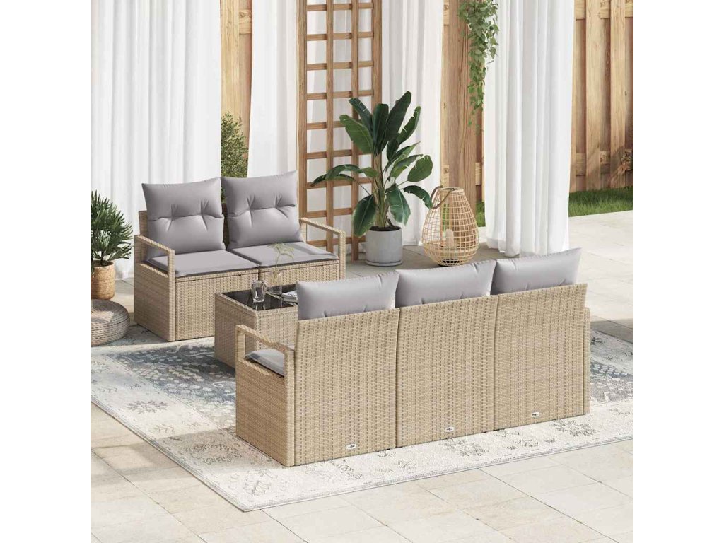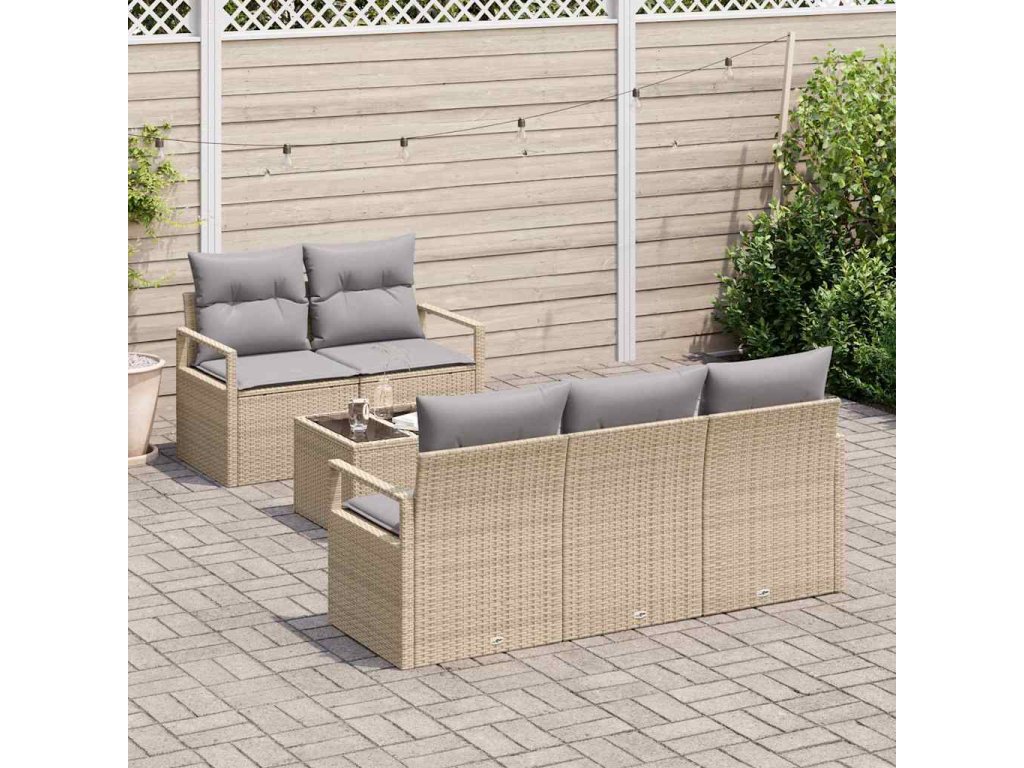 Set pohovek 6 pcs Beige a šedá polyratan 3346260