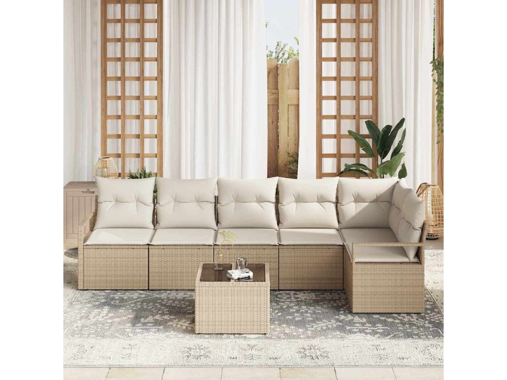 Set pohovek 7 pcs Béžová polyratan 3346411