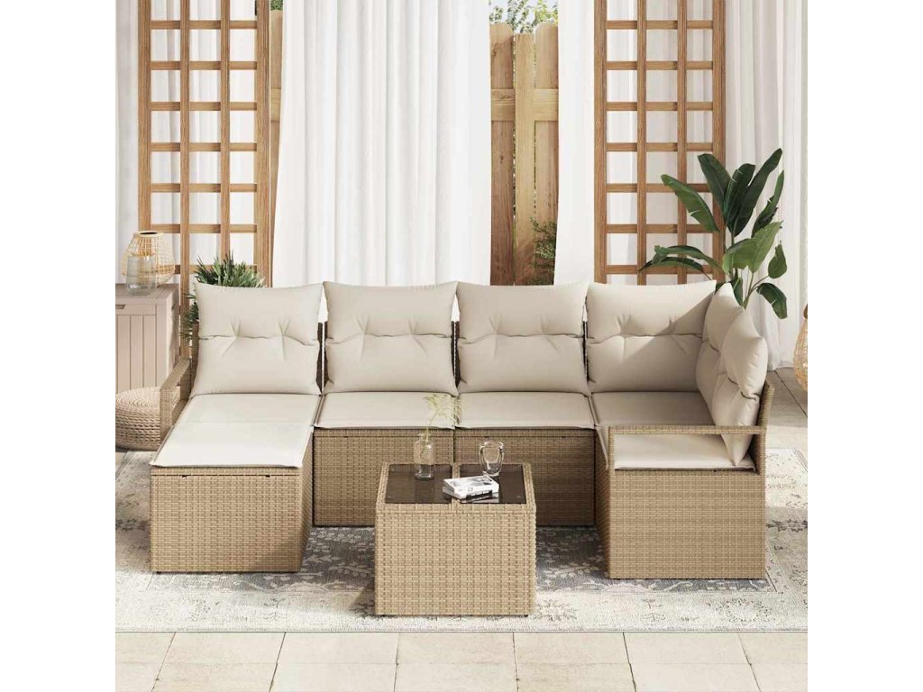 Set pohovek 7 pcs Béžová polyratan 3346461