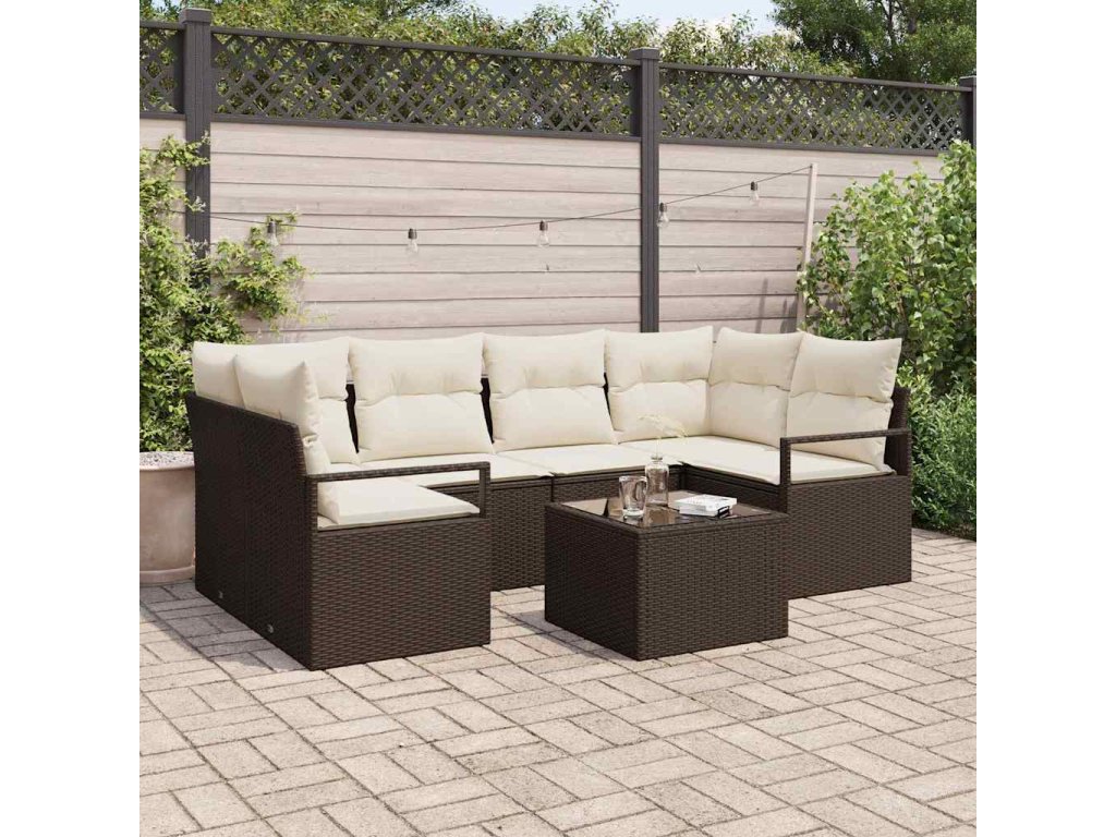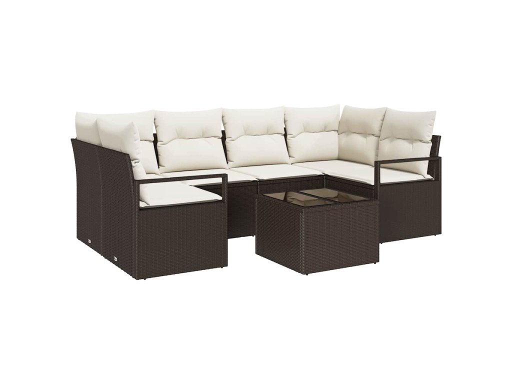 Set pohovek 7 pcs Hnědá a krémová polyratan 3346278