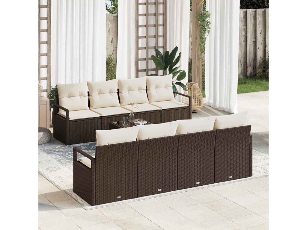 Set pohovek 7 pcs Hnědá a krémová polyratan 3346308