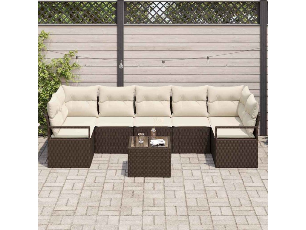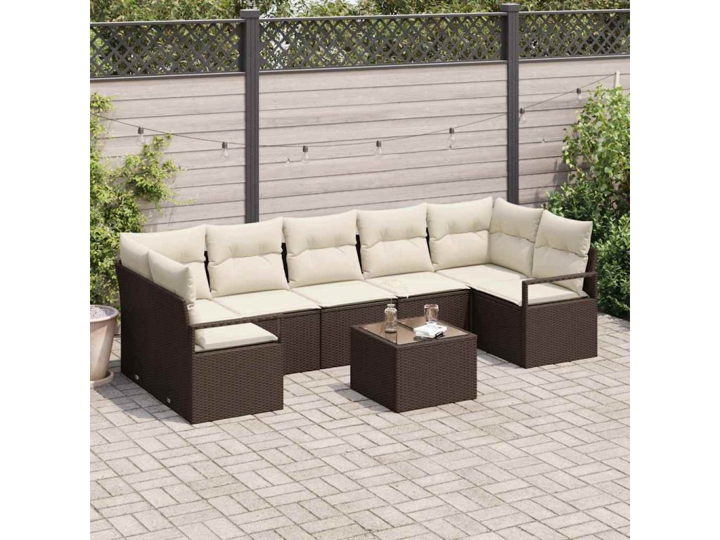 Set pohovek 8 pcs Hnědá a krémová polyratan 3346298