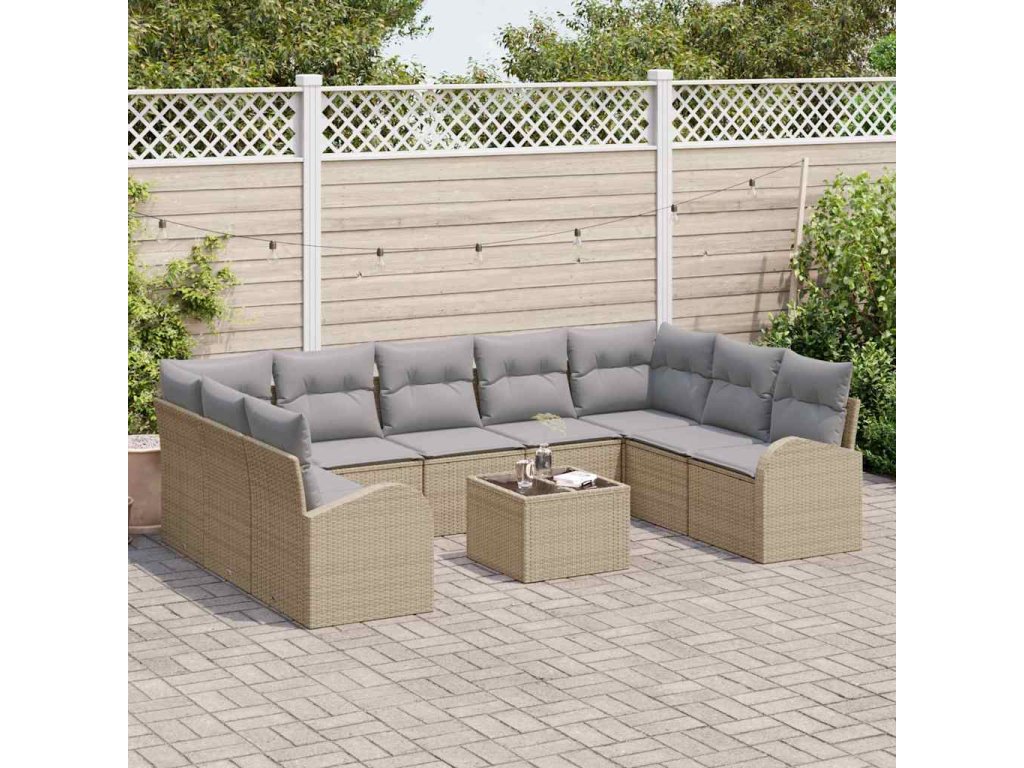 Set pohovek s polštářem 10 pcs Beige a světle šedá polyratan 3354879