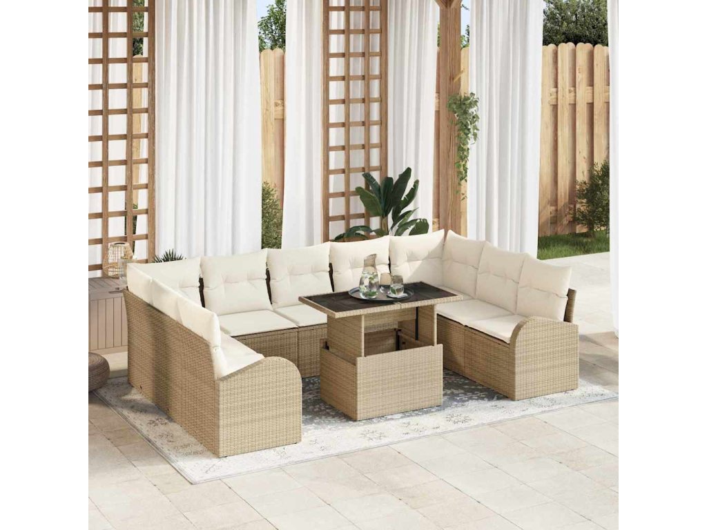 Set pohovek s polštářem 10 pcs béžová a krémová polyratan 3348707