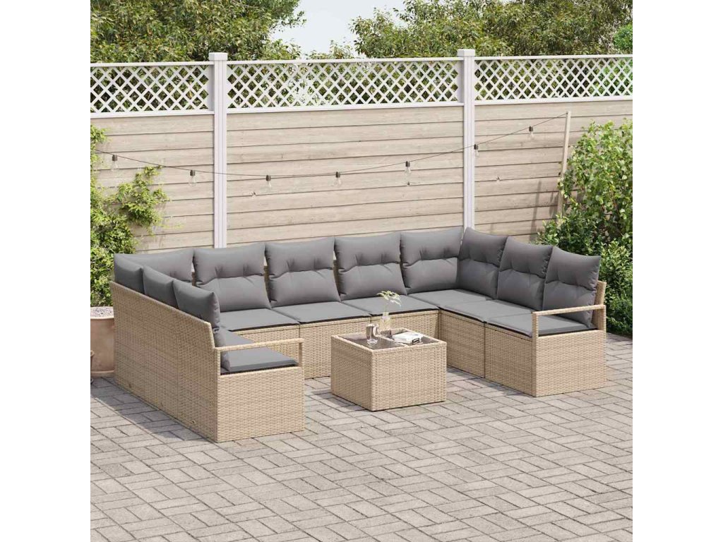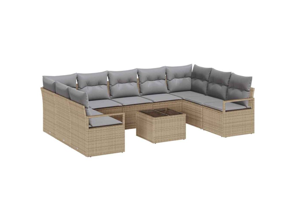 Set pohovek s polštářem 10 pcs Béžová polyratan 3346550