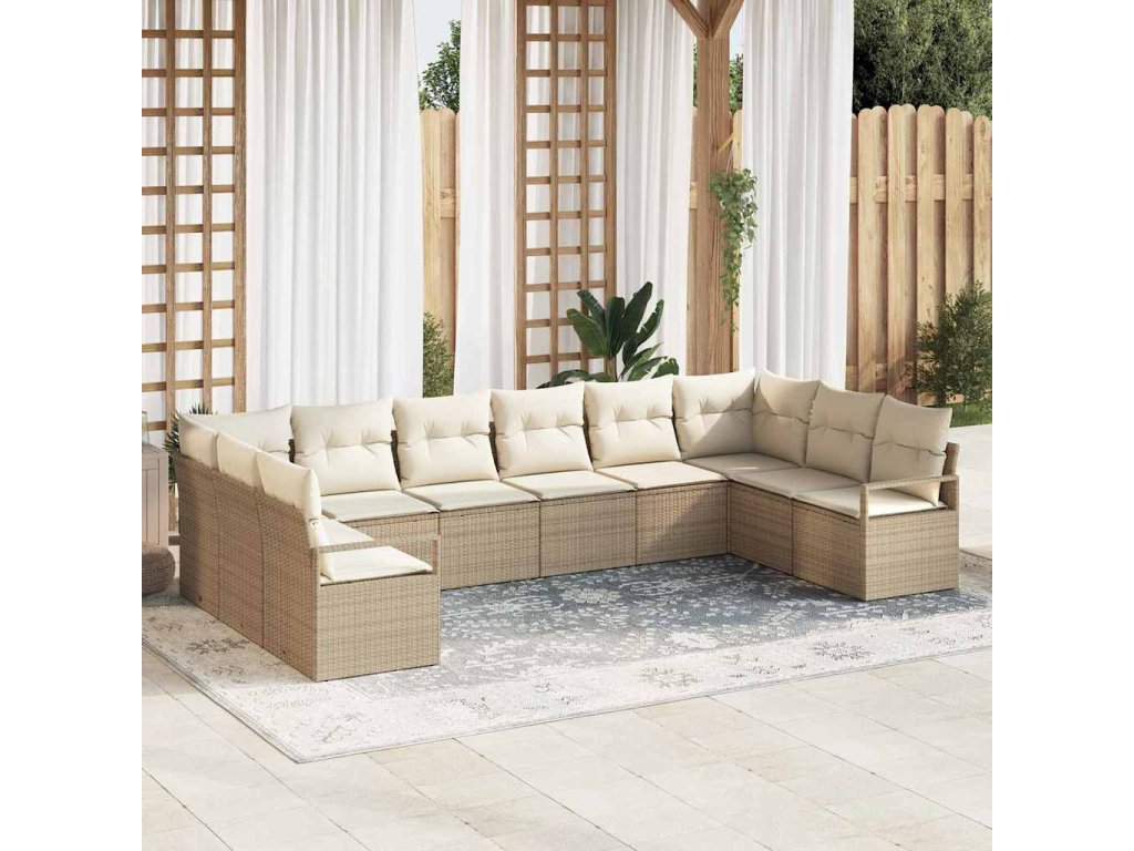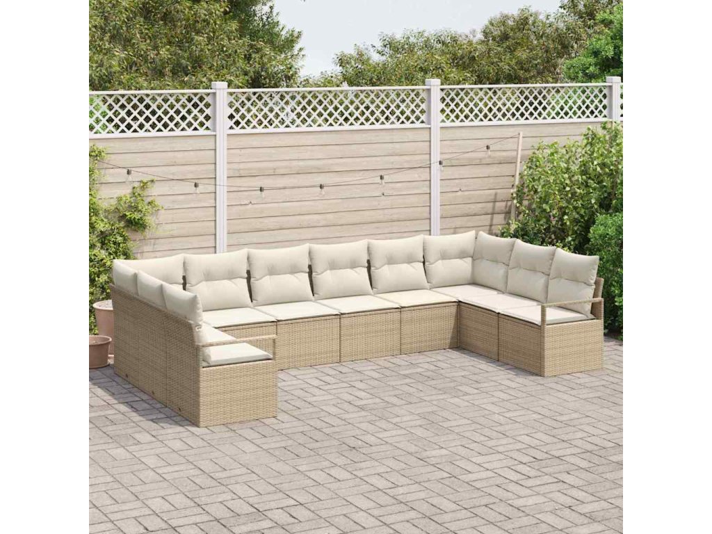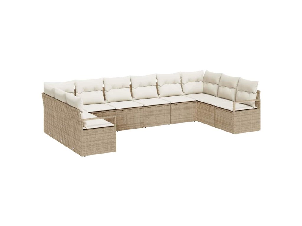 Set pohovek s polštářem 10 pcs Béžová polyratan 3346561