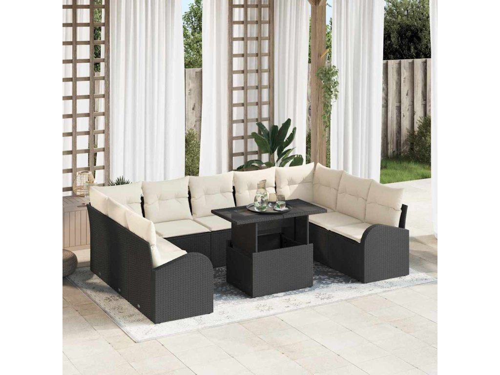 Set pohovek s polštářem 10 pcs Černá a krémová polyratan 3348703