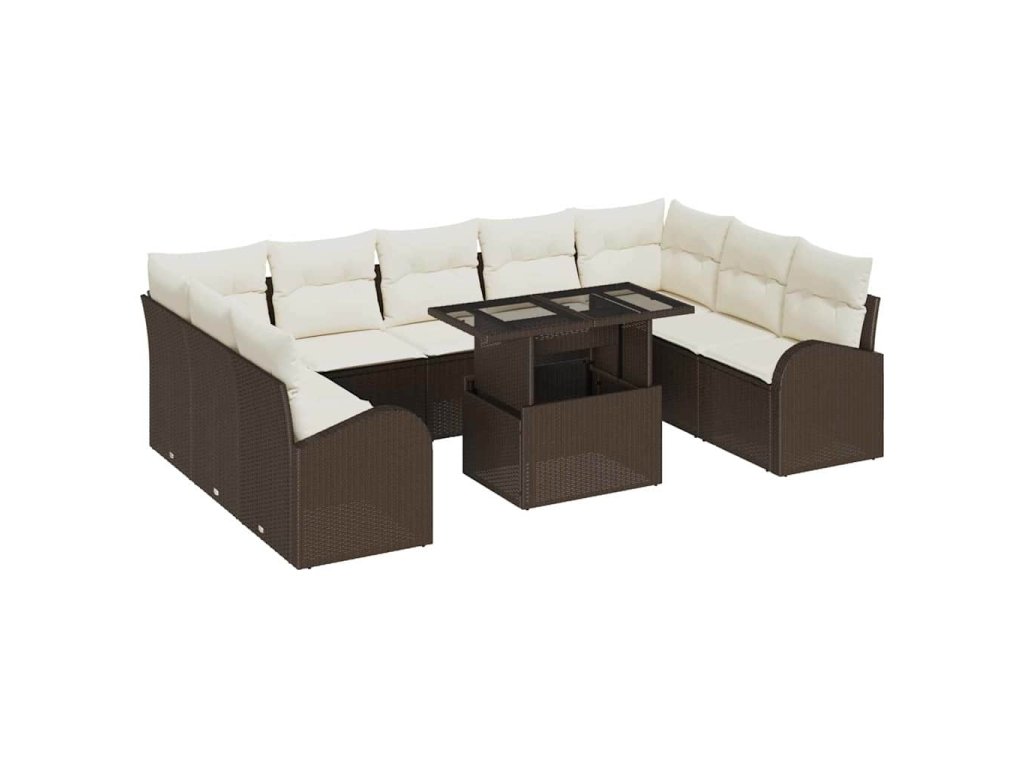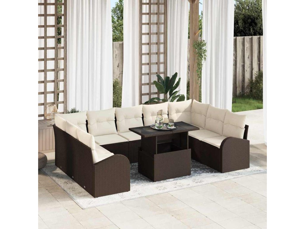 Set pohovek s polštářem 10 pcs Hnědá a krémová polyratan 3348704