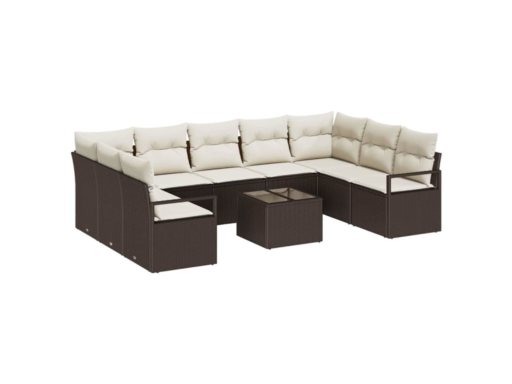 Set pohovek s polštářem 10 pcs Hnědá polyratan 3346548