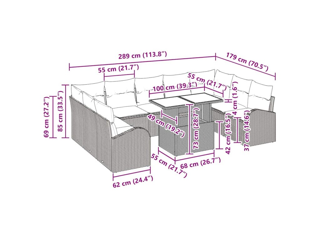 Set pohovek s polštářem 10 pcs Světlá šedá a šedá polyratan 3348708
