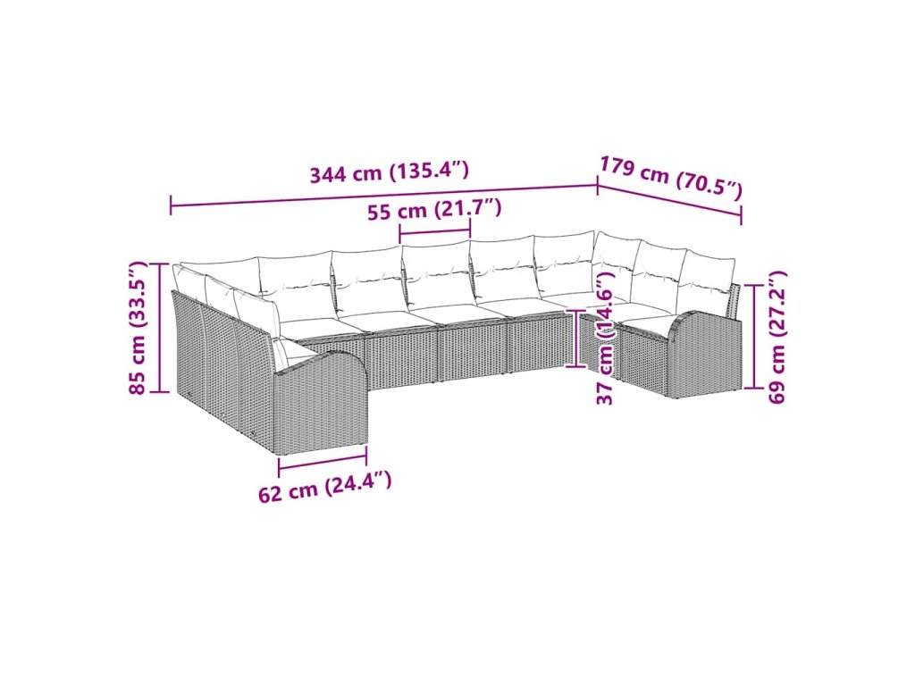 Set pohovek s polštářem 10 pcs Světle šedá Polyratan 3346222