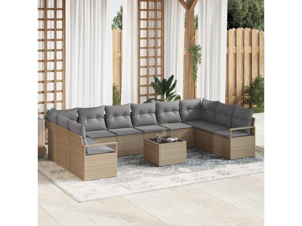 Set pohovek s polštářem 11 pcs Béžová a Světle šedá polyratan 3355239