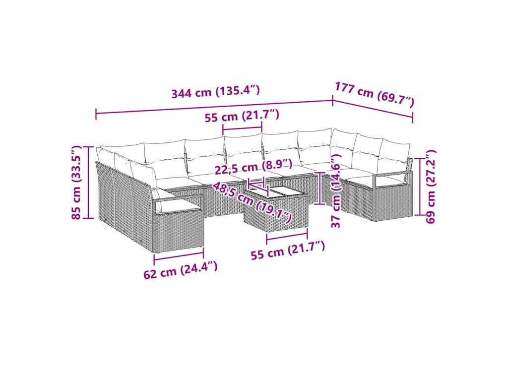 Set pohovek s polštářem 11 pcs Černá polyratan 3346573