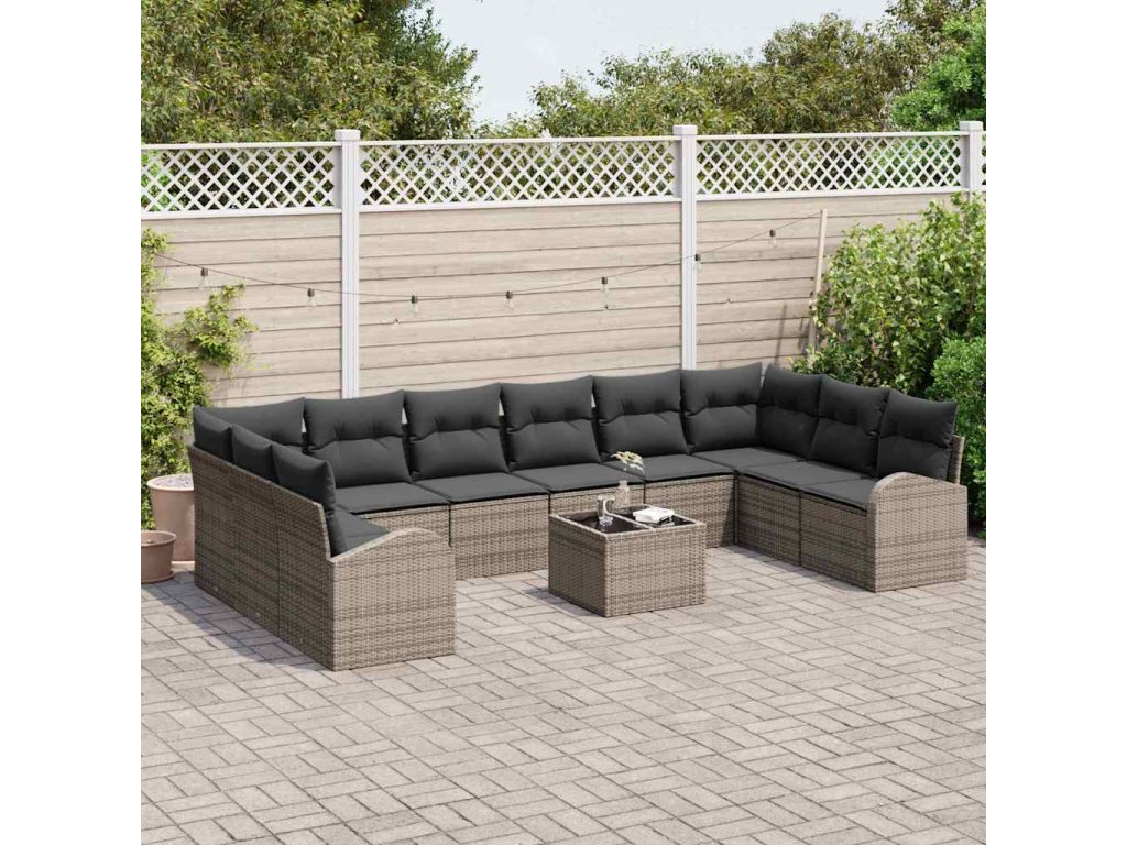 Set pohovek s polštářem 11 pcs Šedá Polyratan 3346229