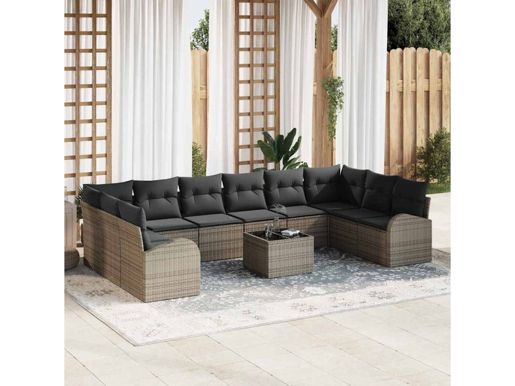 Set pohovek s polštářem 11 pcs Světle šedá polyratan 3354898