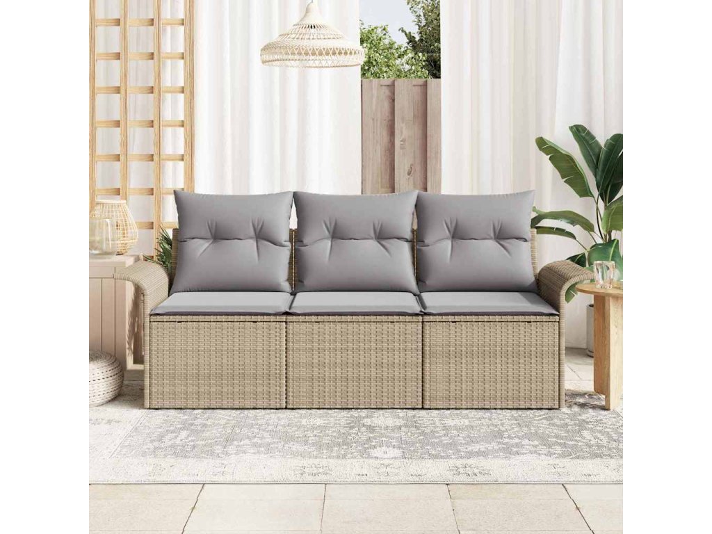 Set pohovek s polštářem 3 pcs Beige a šedá polyratan 3345220