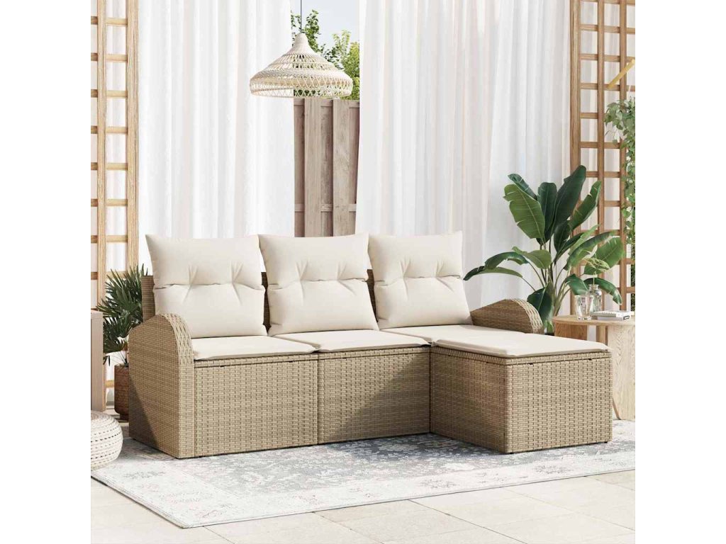 Set pohovek s polštářem 4 pcs Béžová a bílá polyratan 3354660