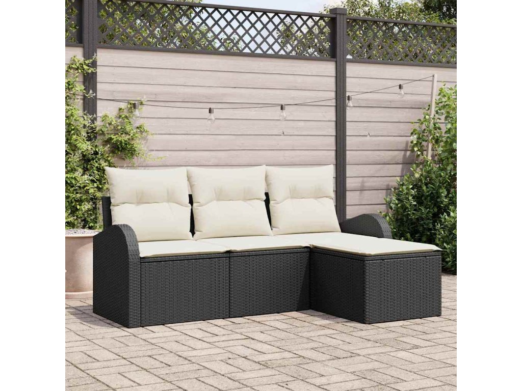 Set pohovek s polštářem 4 pcs Černá a bílá polyratan 3354656