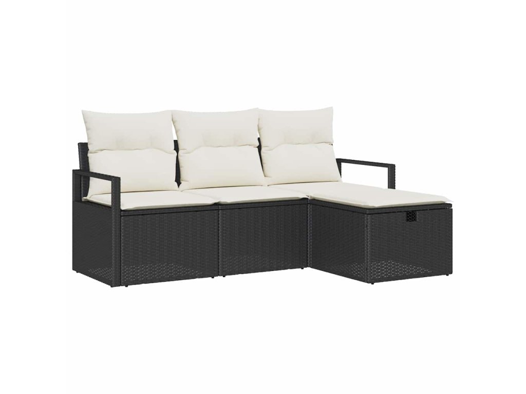 Set pohovek s polštářem 4 pcs Černá a krémová polyratan 3359146