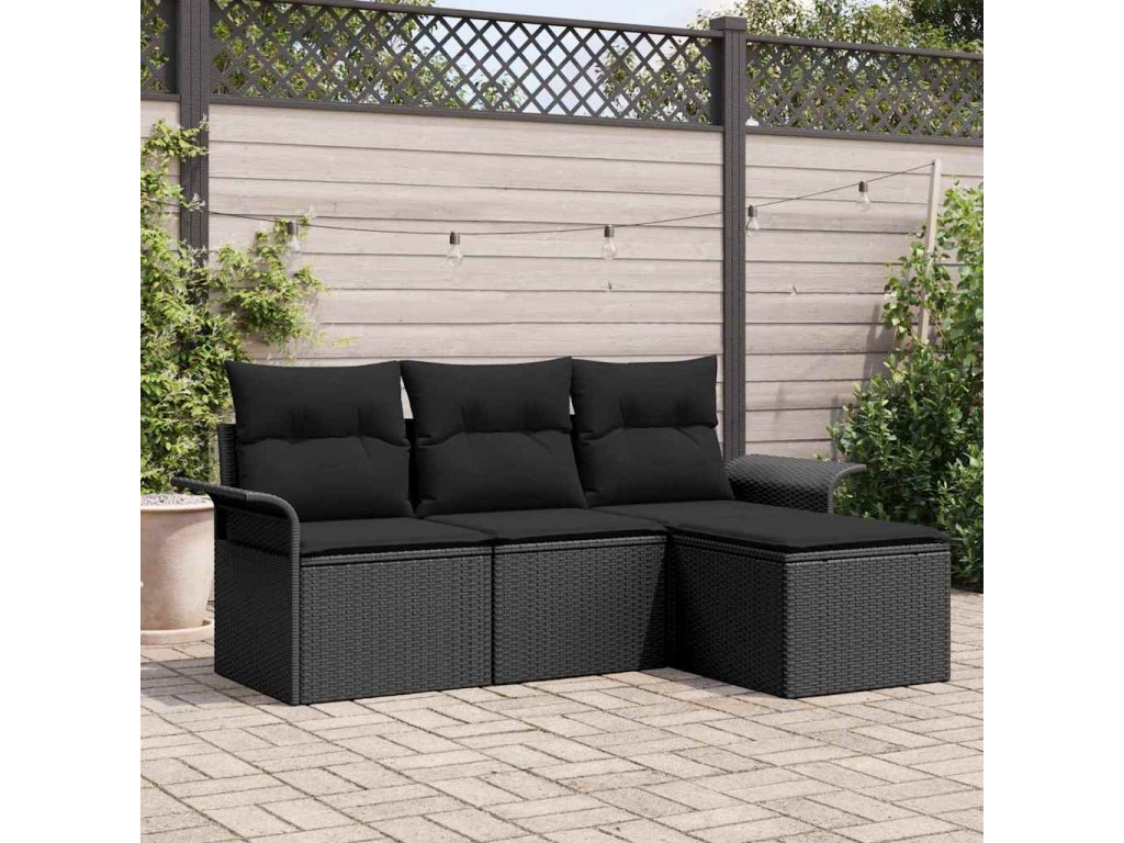 Set pohovek s polštářem 4 pcs Černá polyratan 3345313