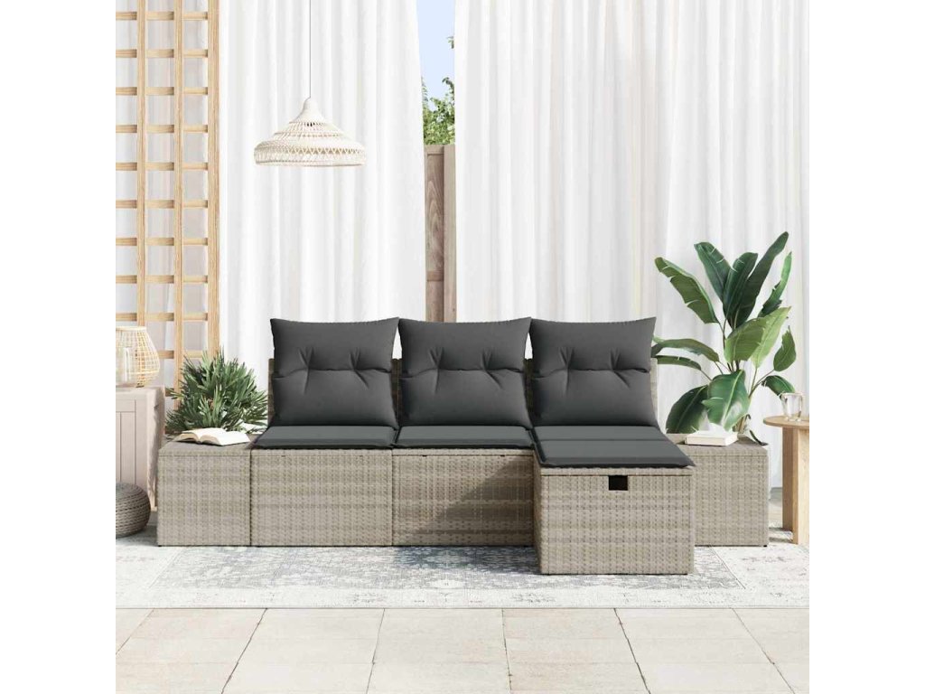 - Univerzální funkčnost: Díky modulárnímu designu můžete soupravu snadno přizpůsobit různým situacím nebo vkusu. Lehký polyratan a ocelová konstrukce vám umožní rychlé přemístění, což usnadňuje uspořádání.
