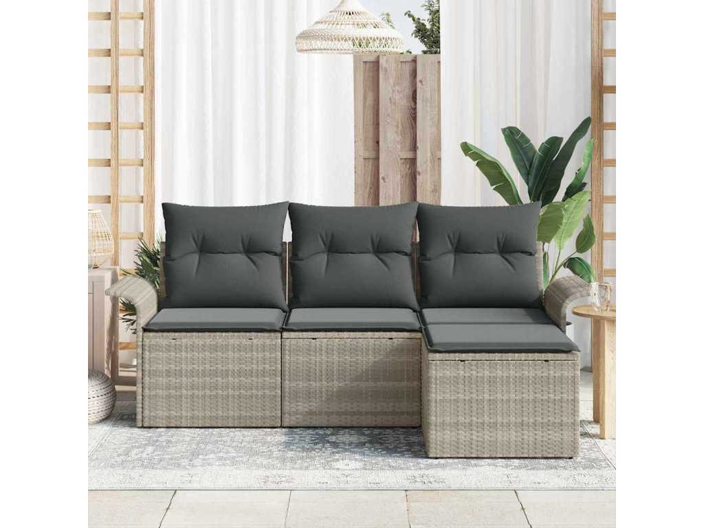 Set pohovek s polštářem 4 pcs Šedá polyratan 3345312