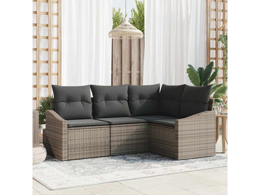 Set pohovek s polštářem 4 pcs Šedá polyratan 3346699