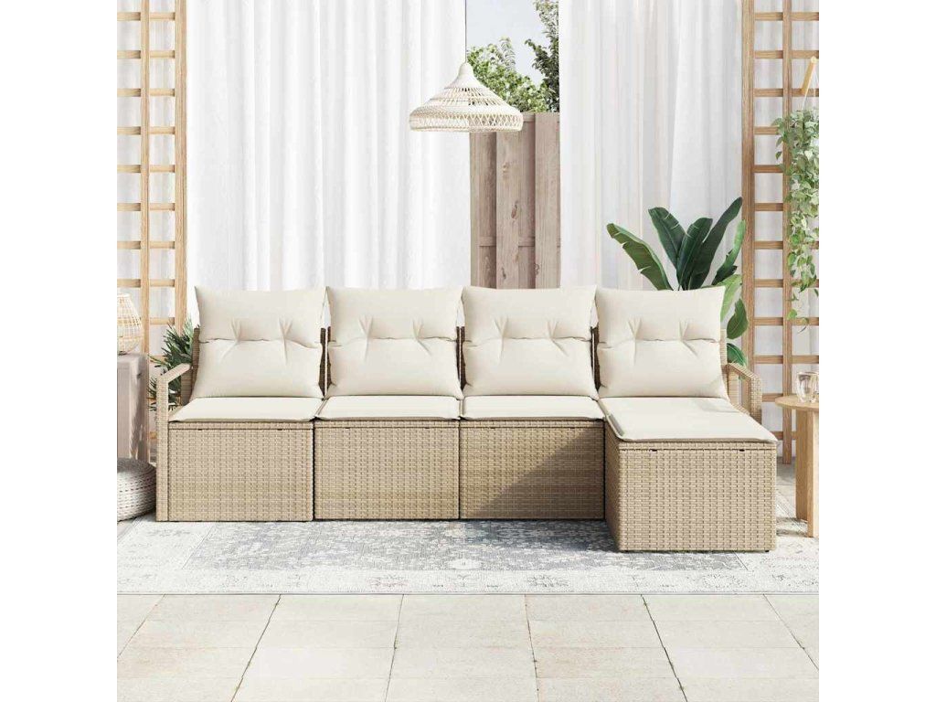 Set pohovek s polštářem 5 pcs Béžová a krémová polyratan 3355010