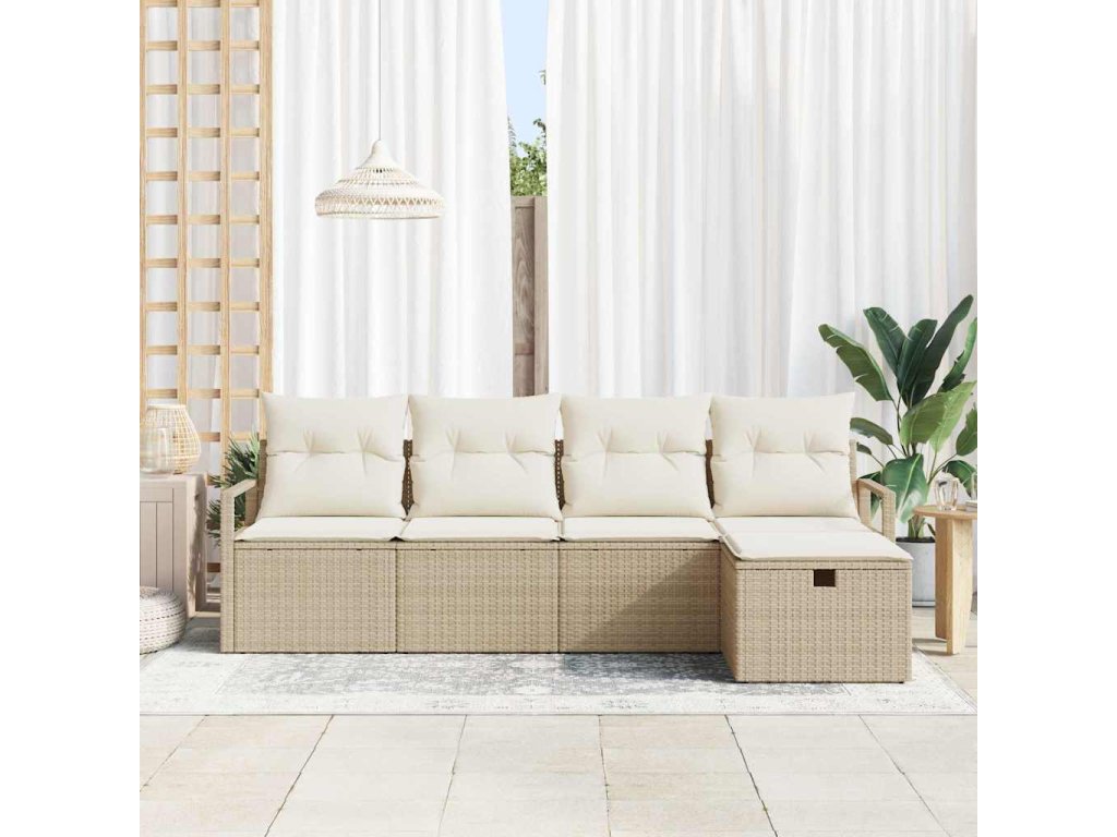 Set pohovek s polštářem 5 pcs Béžová a krémová polyratan 3359160