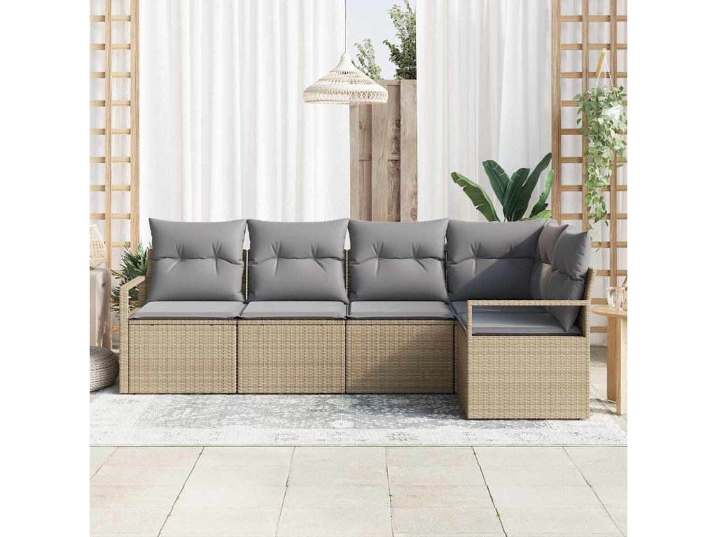 Set pohovek s polštářem 5 pcs Béžová a Světle šedá polyratan 3355049