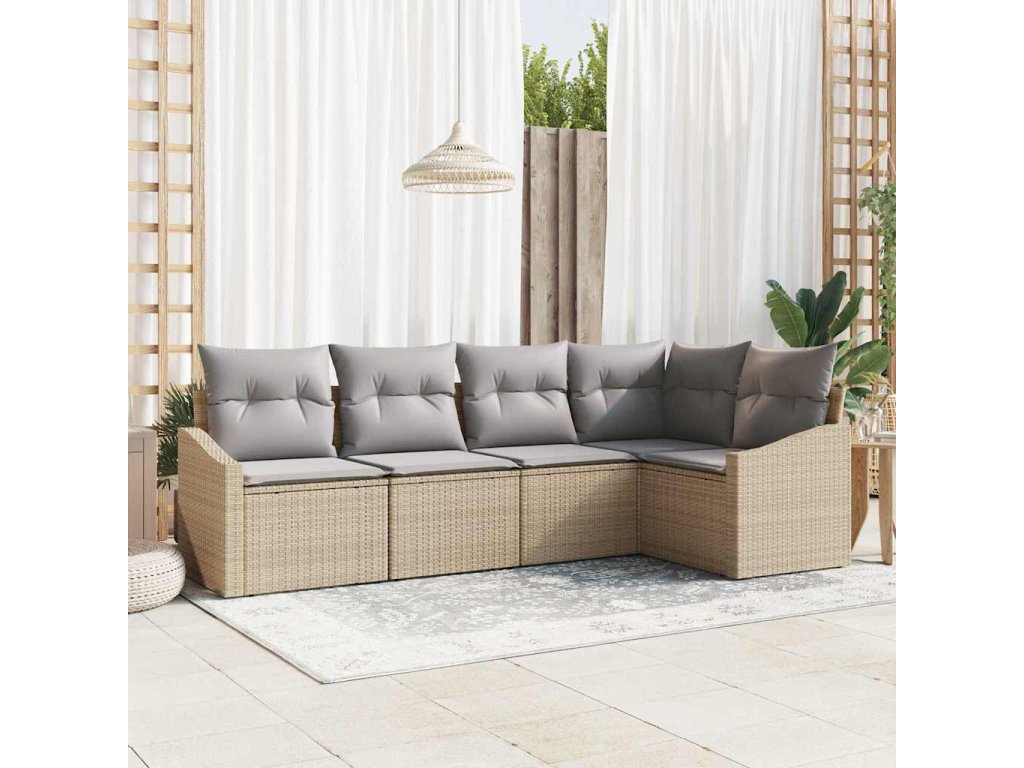 Set pohovek s polštářem 5 pcs Béžová a Světle šedá polyratan 3355389
