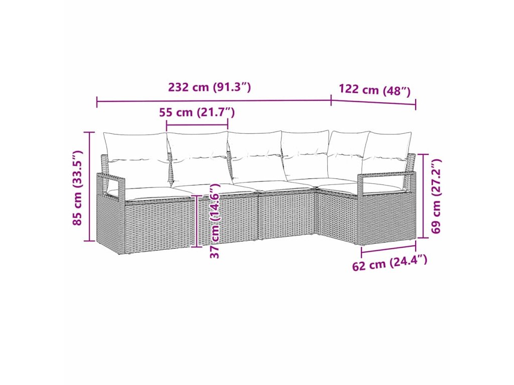 Materiály: Naše pohovková sada je z prémiového polyratanu, co odolává UV záření, takže si i po špatném počasí zachovává skvělý vzhled. Polyratan je super trvanlivý, ideální pro všechny povětrnostní vlivy, aniž by se vzhled měnil. Součásti: Tohle je set se skvělým designem, co vypadá hezky ze všech úhlů. Odnímatelné sedáky mají zipy, takže údržba je hračka. Každý kus má pečlivě doladěné detaily, co zaručují pohodlí a styl. Funkce / Design: Tato modulární souprava pohovek se dá různě přeskupit. Přizpůsobuje se různým akcím nebo osobním preferencím. Navíc má manuální mechanismus pro flexibilní sezení, takže je super praktická. Doporučené použití: Perfektní pro zahrady a terasy, tahle pohovka je ideální pro venkovní život. Ať už pořádáte akci nebo hledáte klidné chvíle venku, tahle sada vám poskytne pohodlné a stylové prostředí pro nezapomenutelné zážitky. Údržba: Doporučuje se zakrýt nábytek, když ho nepoužíváte, aby se uchoval ve skvělém stavu. Tenhle jednoduchý krok pomůže, aby vám nábytek vydržel dlouho, takže bude pořád skvělou součástí vašeho venkovního prostoru.- Barva: Béžová