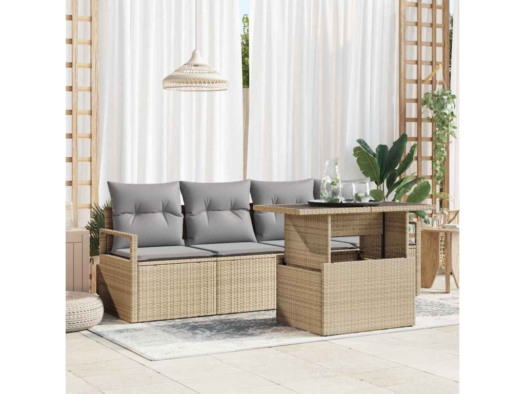 Set pohovek s polštářem 5 pcs Béžová polyratan 3348726
