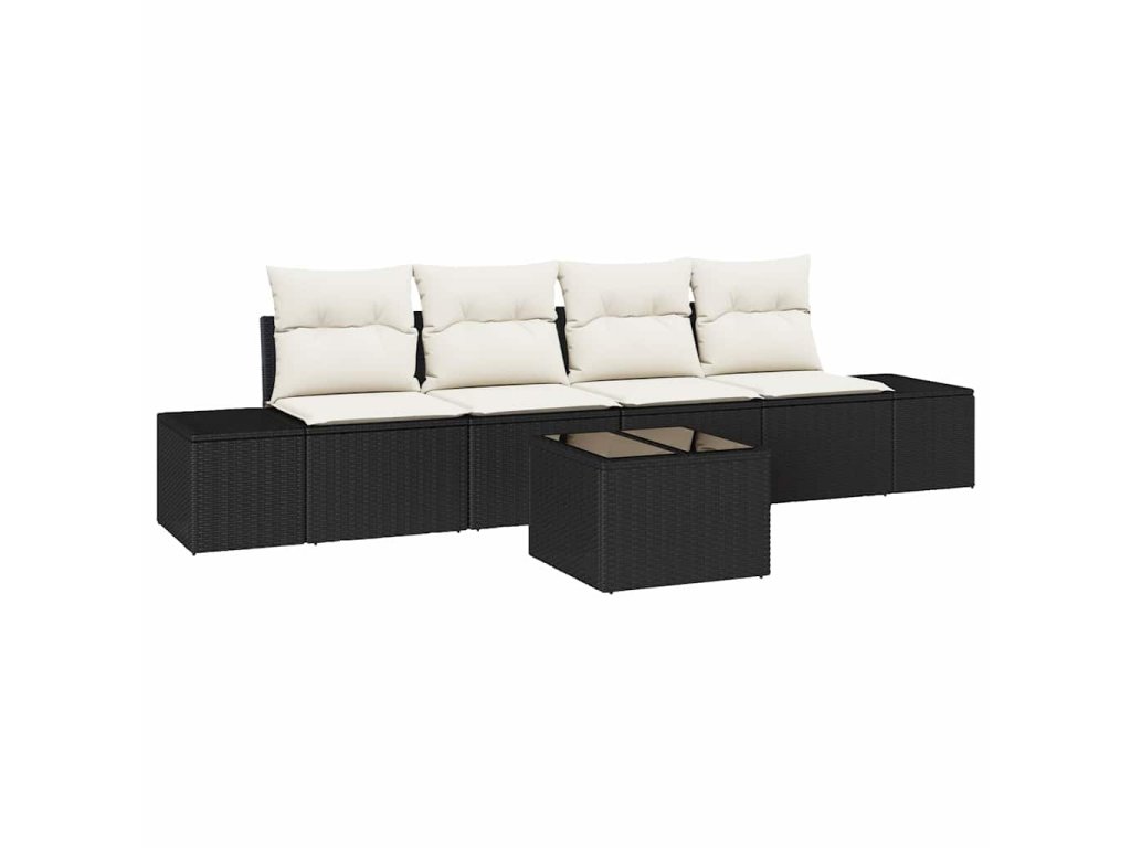 Set pohovek s polštářem 5 pcs Černá a krémová polyratan 3346927