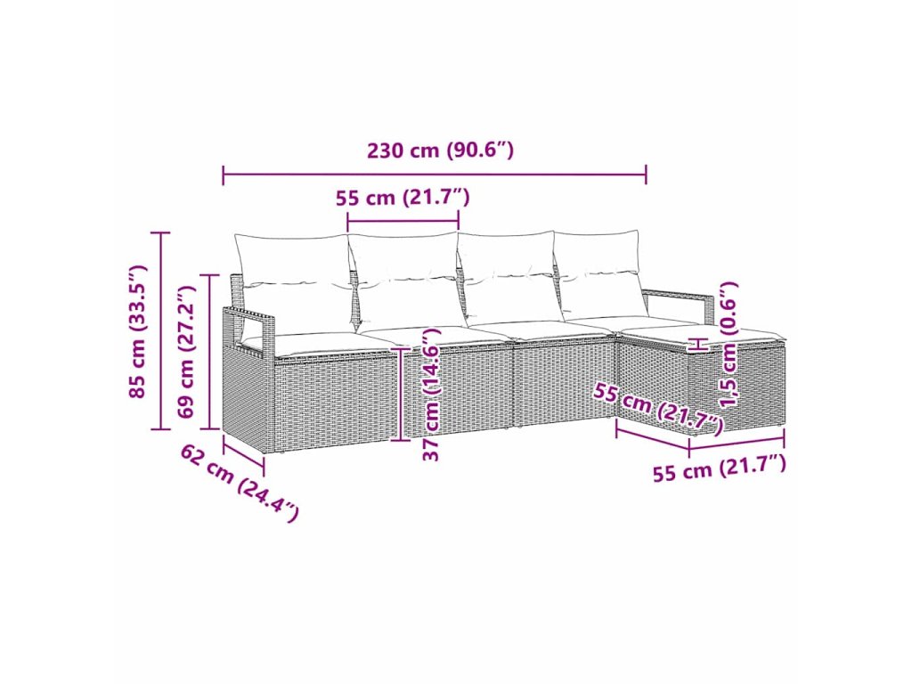 - Integrované úložné prostory: Tato souprava má vestavěné úložné přihrádky v některých sedácích, které poskytují perfektní místo na polštáře nebo osobní věci. Udržuje tak váš venkovní prostor uklizený a organizovaný.