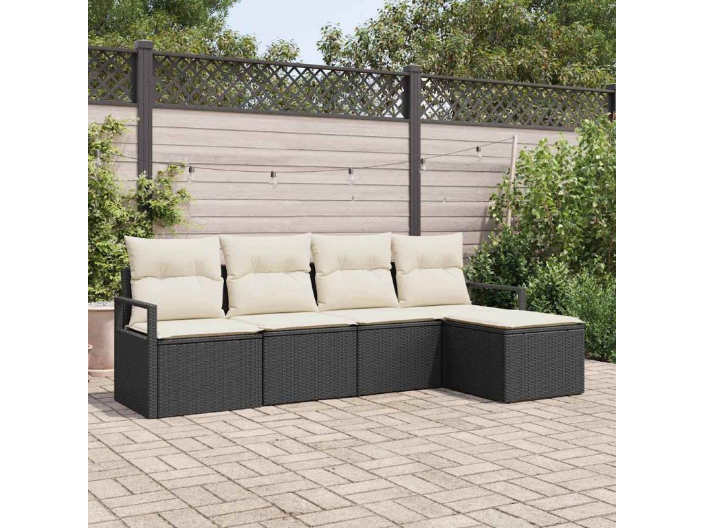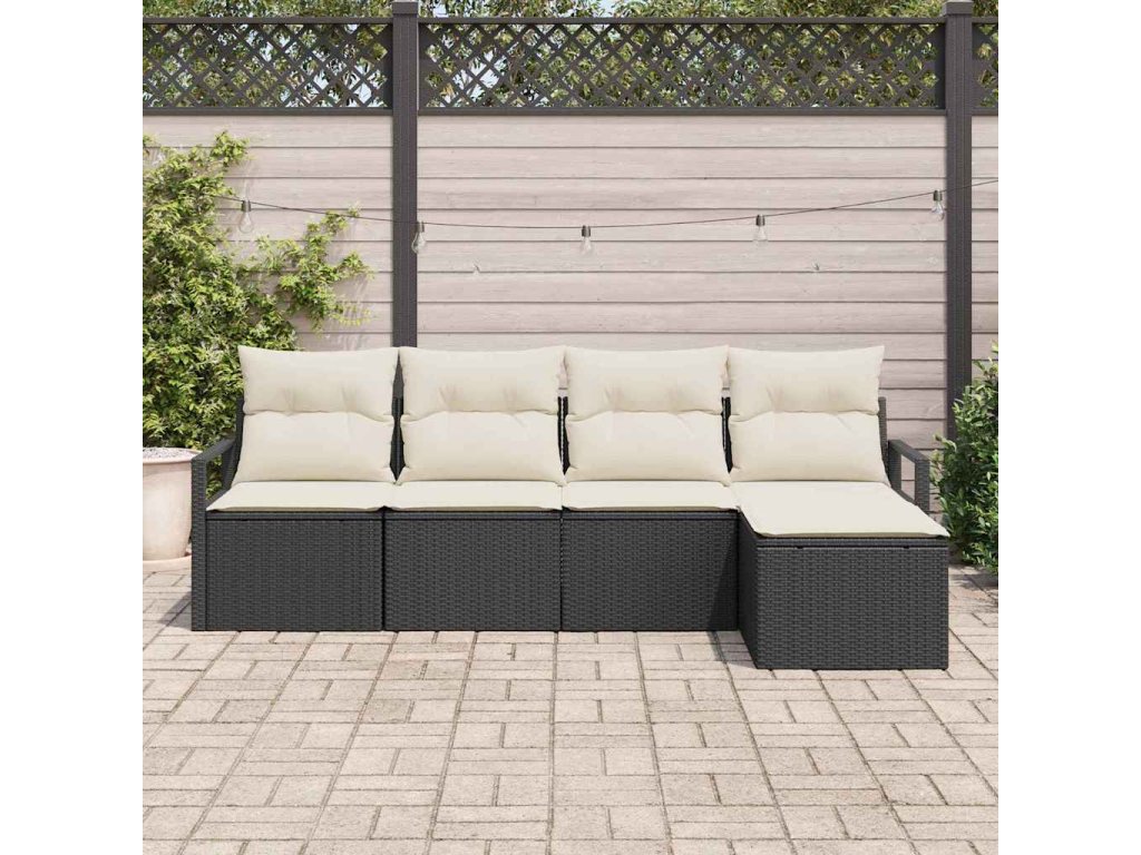 Set pohovek s polštářem 5 pcs Černá a krémová polyratan 3355006