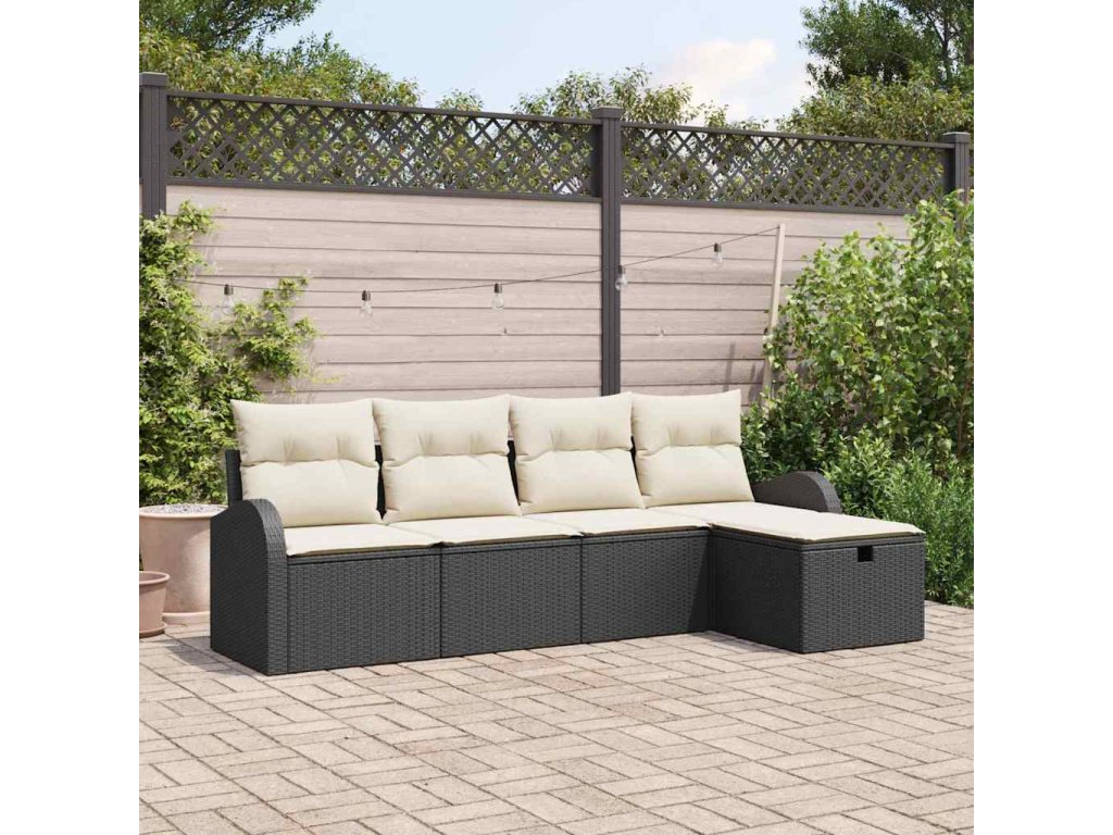 Set pohovek s polštářem 5 pcs Černá a krémová polyratan 3359056