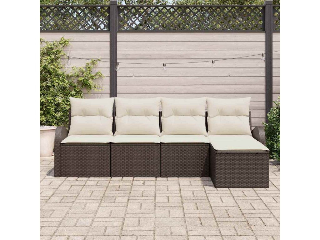 Set pohovek s polštářem 5 pcs Hnědá a bílá polyratan 3354667