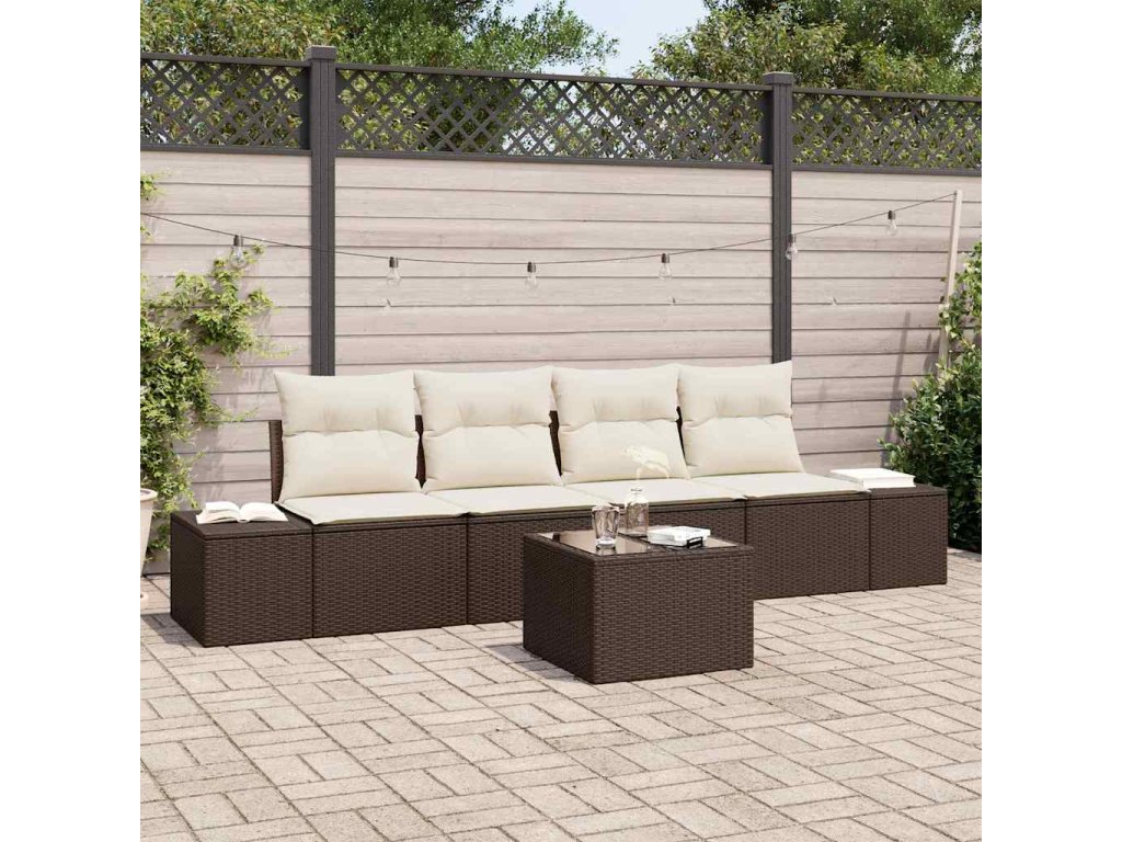 Set pohovek s polštářem 5 pcs Hnědá a krémová polyratan 3346928