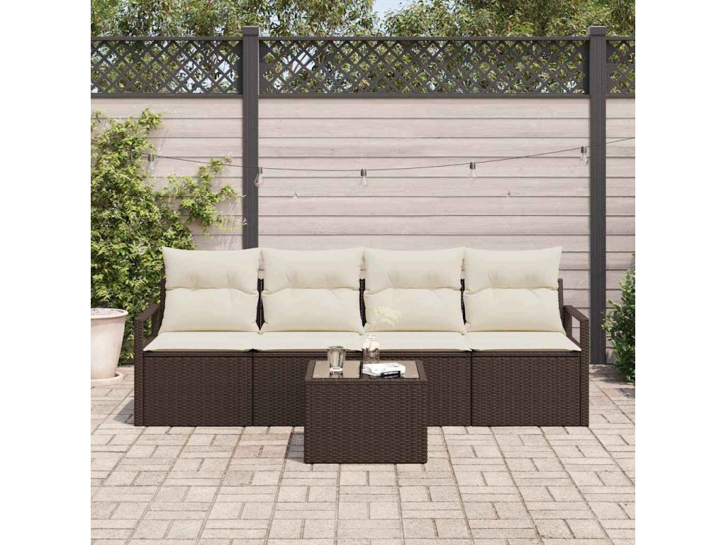 Set pohovek s polštářem 5 pcs Hnědá a krémová polyratan 3354917