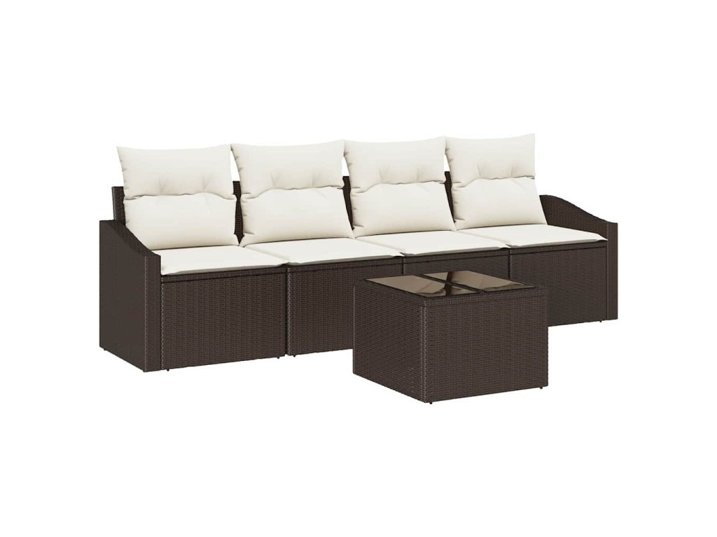 Set pohovek s polštářem 5 pcs Hnědá a krémová polyratan 3355257