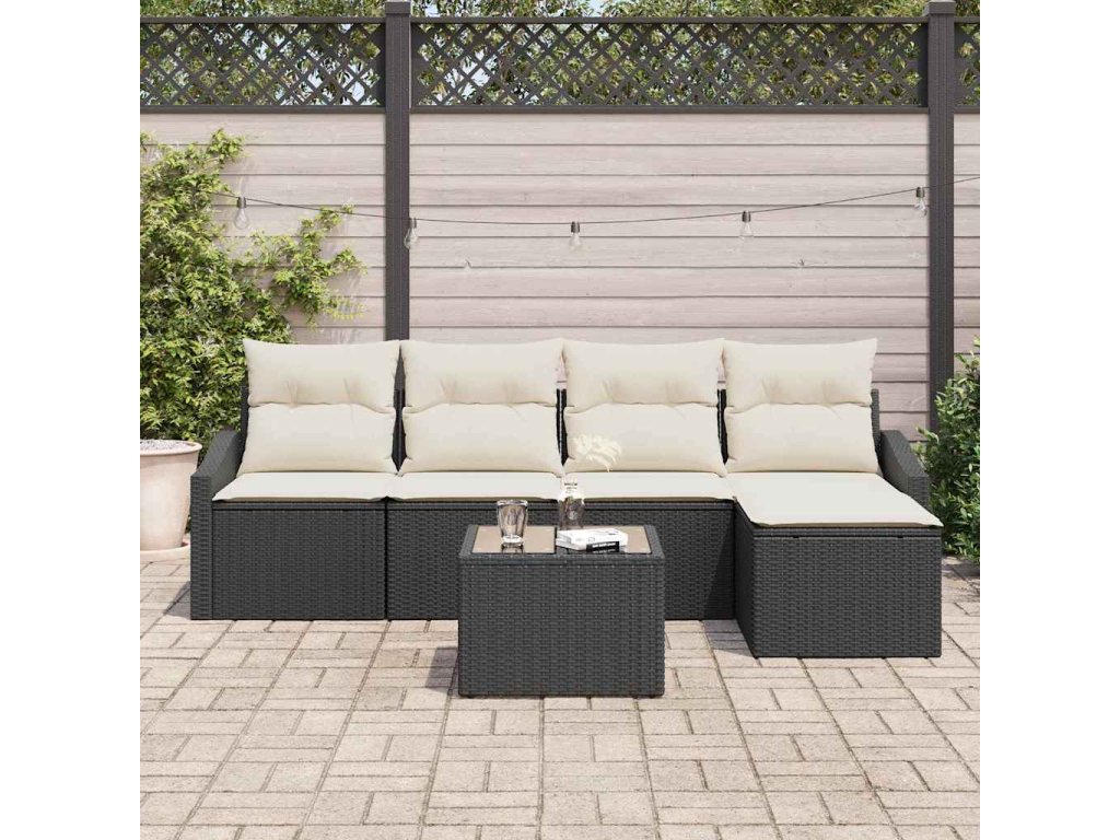 Set pohovek s polštářem 5 pcs Hnědá a krémová polyratan 3355356