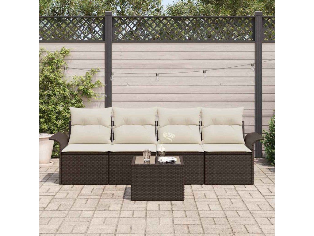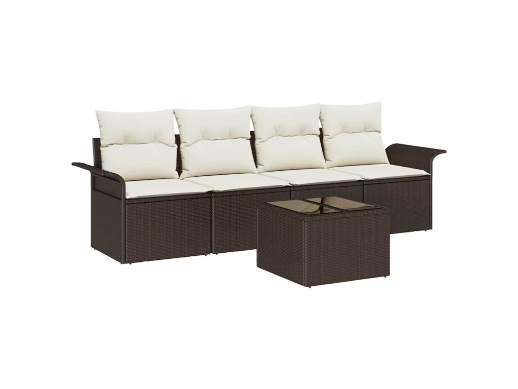 Set pohovek s polštářem 5 pcs Hnědá polyratan 3345228