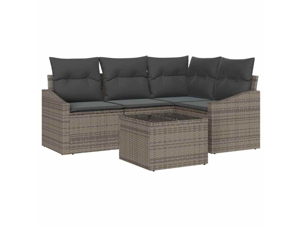 Set pohovek s polštářem 5 pcs Šedá polyratan 3346709