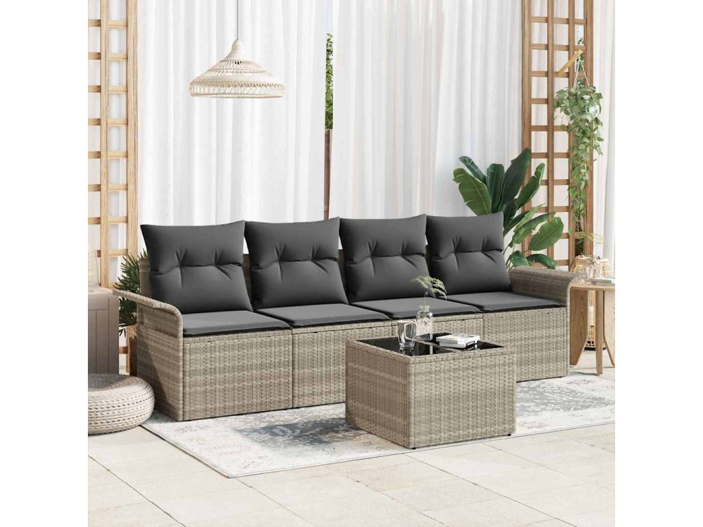 Set pohovek s polštářem 5 pcs Světle šedá polyratan 3345232
