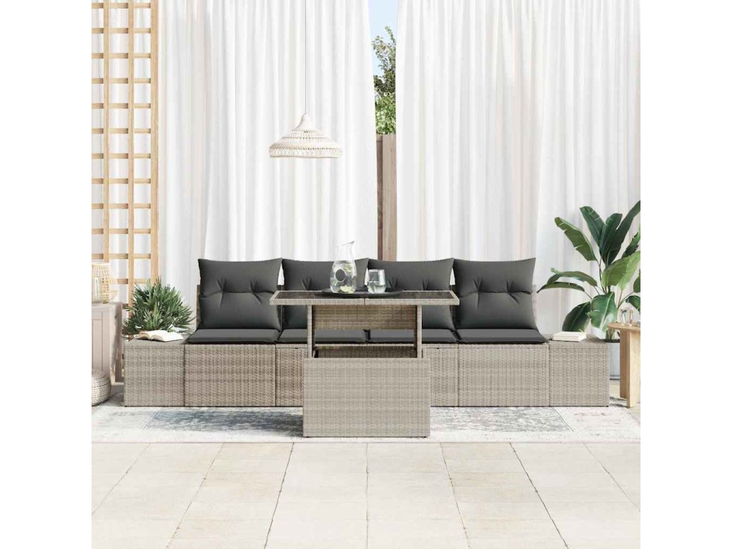 Set pohovek s polštářem 5 pcs Světle šedá polyratan 3349088